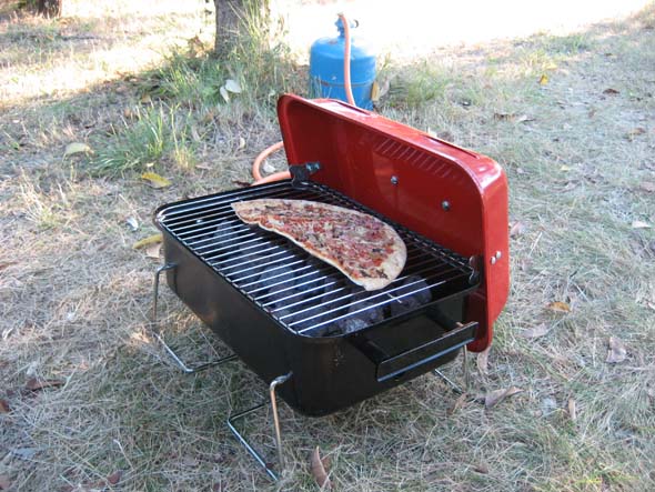 Als eerste zijn we boodschappen wezen halen en bij de camping ben ik is begonnen om een poging te wagen om de slag dop van de gasslang af te halen om de andere gasdrukregelaar er op te zetten. Maar deze zat muurvast, dus dan maar wederom weer alles op de barbecue. De barbecue hebben we dus omgedoopt naar een tosti-ijzer, sneetjes brood met kaas erop en gaan!