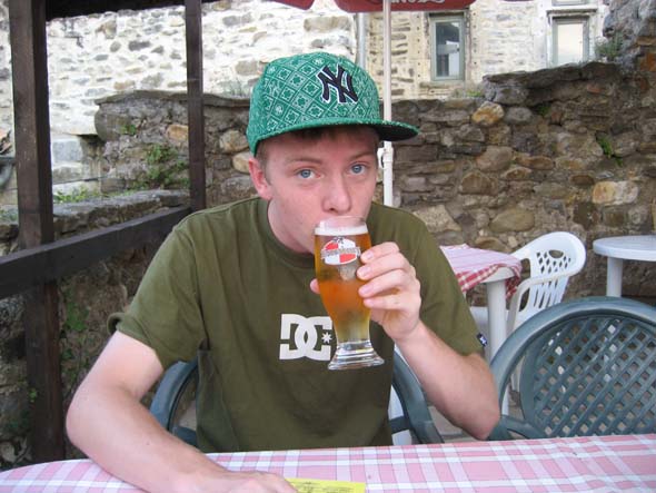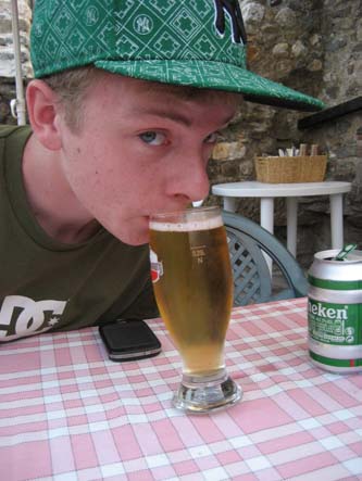 Na dat we die koude grot uit waren dachten we nog een biertje te kunnen halen, alleen voor 2 euro en een beetje kwamen we helaas niet veel verder. Dus hadden we maar besloten om een biertje te gaan pakken in het dorp. Natuurlijk eerst eventjes langs de geldautomaat om de contanten op te vullen, daarna hebben we een heerlijk biertje gedronken op het terrasje. We hadden Biertje besteld en kregen netjes het bonnetje, legde het geld neer alleen hadden het niet gepast. Nadat we het zat waren en zo iets hadden dat we terug wilde naar de tenten hebben we het geld dan maar weer netjes opgeruimd, heerlijk zo gratis biertje van het huis.
