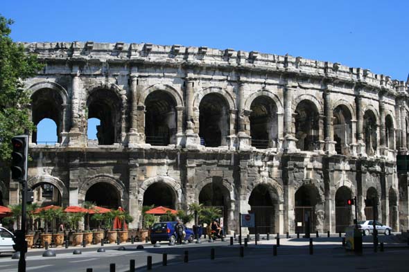 Maar daarna zijn we naar Nimês geweest om het amfitheater te bezichtigen, de reis er heen duurde wel langer dan verwacht, maar na zo een klein uurtje waren we er eindelijk aangekomen. Als eerste moesten we de auto kwijt zien te krijgen, nadat we eindelijk een parkeergarage tegen gekomen waren konden we naar het amfitheater lopen. Daar hebben we binnen en buiten foto’s geschoten en nog eventjes boven in gezeten. Binnen was er niet zo heel veel te zien, op twee kleine ruimtes na waar wat kleding en materialen uit die tijd stonden op gesteld.