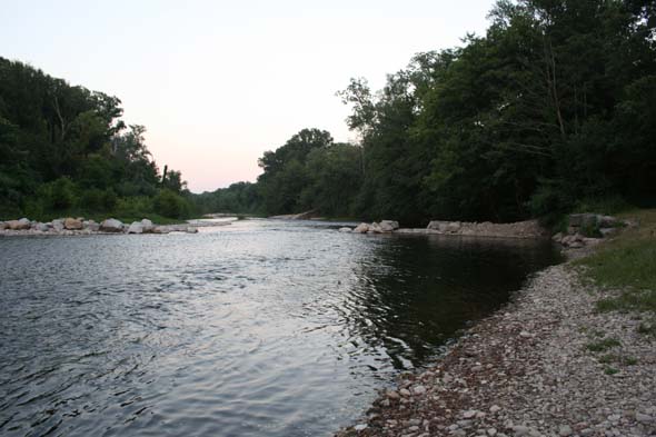 Terug op de camping was het dan eindelijk hoogtijd om net voor het afsluiten van mijn vakantie en tevens ook eindelijk de punt op de i te zetten om afscheid te nemen van Kwantum. Vlak voor de vakantie hadden we als gekheid er al over gehad, als je weg gaan bij Kwantum moet je wel je werkshirt ritueel verbranden. Dus bij deze hebben we terug op de camping ergens langs de rivier buiten de camping om nog een mooi plekje gevonden om het shirt netjes in wat stokjes te zetten en wat behulpmiddelen klaar er overheen gooien om het shirt netjes in rook opzien gaan.