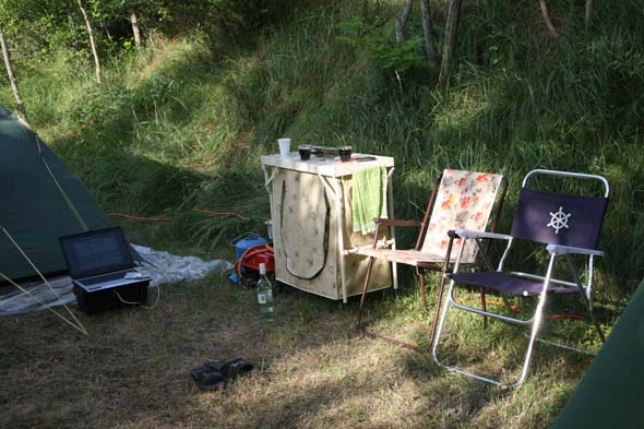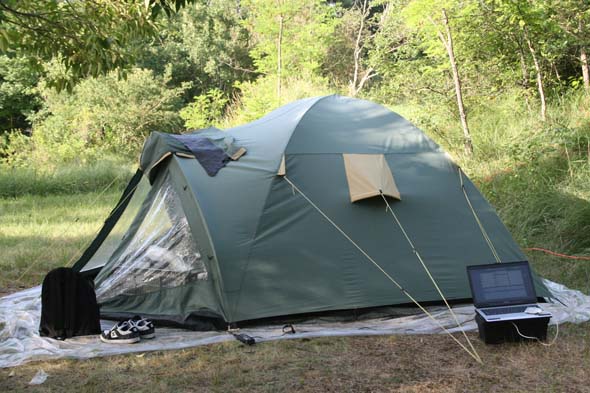 Inmiddels zaten we al tegen een uurtje of negen, maar nog niet alle foto’s stonden op het internet. Het was de bedoeling om het internet van de camping te gebruiken, alleen omdat we nog wel eventjes zoet zijn geweest met uitzoeken en verkleinen hebben we het maar gewoon bij onze tenten gedaan. Maar rond een uurtje of 11 waren wel zo beetje klaar met alles te updaten zo ver het onze bedoeling was.
